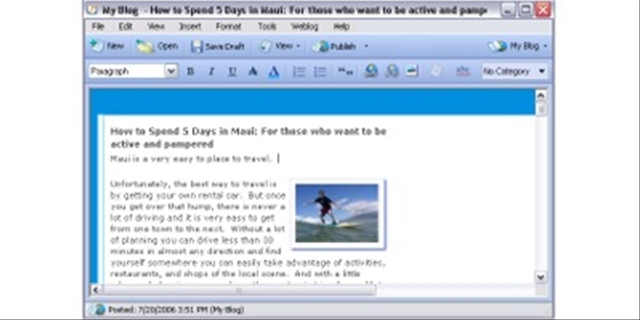 Most of the time, I have internet access, using my bluetooth cell phone when no other options exist. I usually write my posts online. But I’ve been wondering about the offline blogging tools out there and one that I ran across is Windows Live Writer, which I am using to write this post. The program is currently in beta and is a part of the whole Windows Live series.