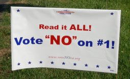 A neighbor stopped by tonight and asked me where he could get a Vote No yard sign. Almost made up for the fact that someone pulled mine out and left it on the ground the other day.