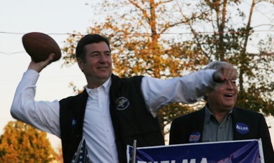 Oh – and I see why Allen was late. He was watching a football game over in Portsmouth. For a guy who holds the UVA record for interceptions in a game (5), he still is fascinated with it. He threw some balls into the crowd at the rally. The funniest thing was that the people catching them had to give them back!