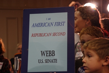 Webb says little about his son, Jimmy, who is serving in Iraq. He even appeared to tear up just a little when Mark Warner mentioned him. But wearing Jimmy’s boots is a constant reminder to all of us why Webb is really in this race.