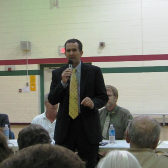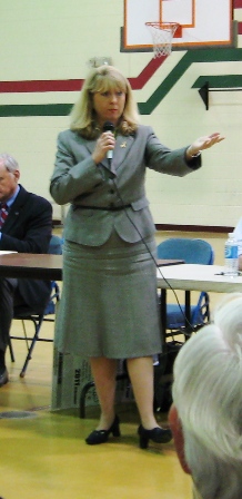 A tremendous amount of time was spent on – what else? – real estate taxes. Even when the question wasn’t about real estate taxes, the answer was. All of the candidates support the 20% homestead exemption. Giffin and Rerras support a 5% cap on assessments, similar to this bill introduced by Rerras last session. Miller was ready. While I didn’t see the fliers Pam mentioned, the placard showing the differences in the real estate taxes under the homestead exemption versus the 5% cap were a good visual aid. Research in places where there caps on assessments (note: a cap on assessments is not the same as a cap on taxes) indicates that the unintended consequence is that higher taxes are paid. (Yeah, I know – I still have to get that post up.) So while you might not believe it, the math shown was absolutely correct.