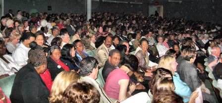 Perhaps it was the setting, perhaps it was the crowd but this was not a campaign rally. The crowd listened respectfully and interrupted her with applause at the appropriate times, and gave her a standing ovation at the end. For the most part, there was something in her speech for everyone.  As folks streamed out of the theater, I got the sense that people were both excited and determined: excited at the possibility of Obama as president and determined to do their part to help it happen.