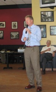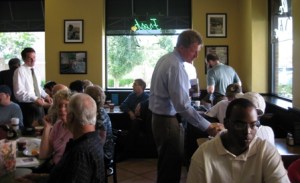 The Virginia Beach Democratic Committee held its regular breakfast this morning at Jason’s Deli. (Note to VBDC: $8 for danish/coffee/juice/fruit ain’t “breakfast.”) With municipal elections for VB coming up in November, there were quite a few local candidates there – and all but one chose to address those assembled.