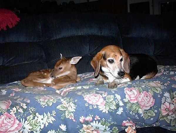 A fawn followed this beagle home — right through the doggie door — in the Bittinger, MD area.