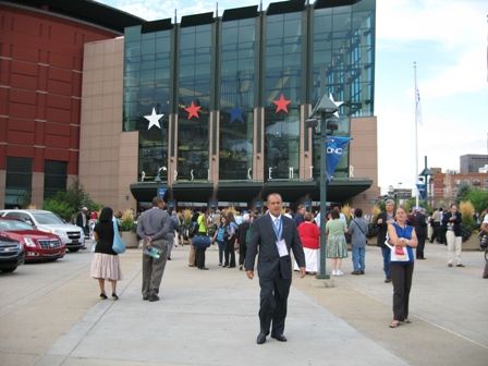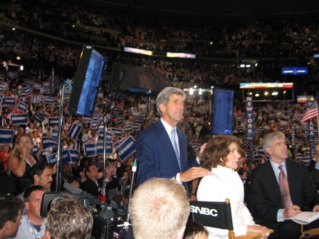 Entering the Pepsi CenterGov. Bill RichardsonSen. Ted Kennedy makes surprise appearanceThe Kerrys watch Kennedy speakConvention goers wave Michelle banners during her speechBasketball star Charles Barkley (center) with Gov. Tim Kaine (right) at the governor's reception