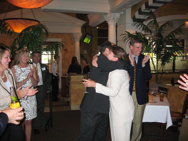 Due to Phil Hamilton’s traffic jams on I-64, Senator Warner was a bit late but talked of how he wished to have had Robin as a Delegate during his term as governor to move on items obstructed by Hamilton’s right wing cronies. He tool some time to discuss his impressions on his first few months in DC. Steve Shannon could not get there on time because of the aforementioned Phil Hamilton traffic jams and Jody Wagner arrived about quitting time at she had a wonderful time on the parking lot that was formerly know as Interstate 64. (to rub salt in the wound, traffic was at a crawl heading back east)