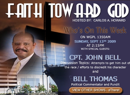 Capt. John Bell, who is running for Sheriff in Virginia Beach, will be one of the guests on “Faith Toward God,” a local radio show that airs at 2:15pm on WGPL, 1350AM. Bell, who was recently the subject of an investigation into his use of government resources in his campaign, will discuss the attempts to “get him out of the race” and “efforts to discredit his character.”