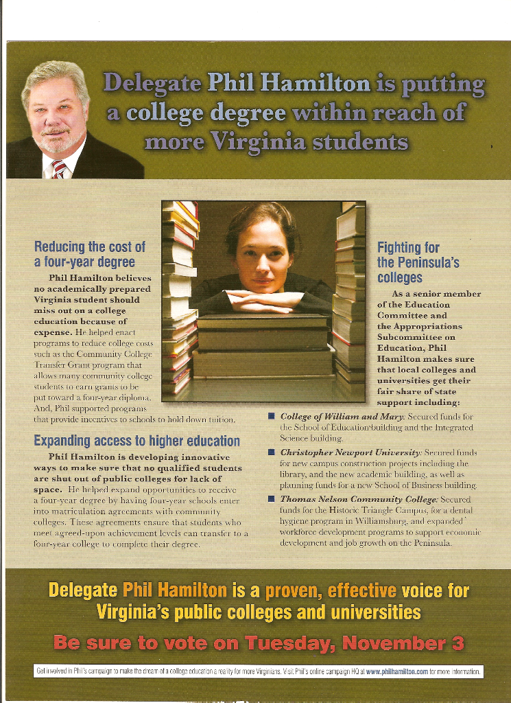 This was about the HUGE cahones of Hamilton’s mailer extolling his bringing home funding for Colleges with, being kind, a cloud over his head on the very same subject.