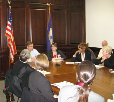 Senator Mark Warner held a roundtable in the Norfolk Main Library this morning to hear from military women and representatives of various veteran support groups on the issue of combat stress. Last month, Warner sponsored legislation directing the U.S. Department of Veterans Affairs to spend the next year studying whether it is adequately addressing the issue of combat stress in military women.