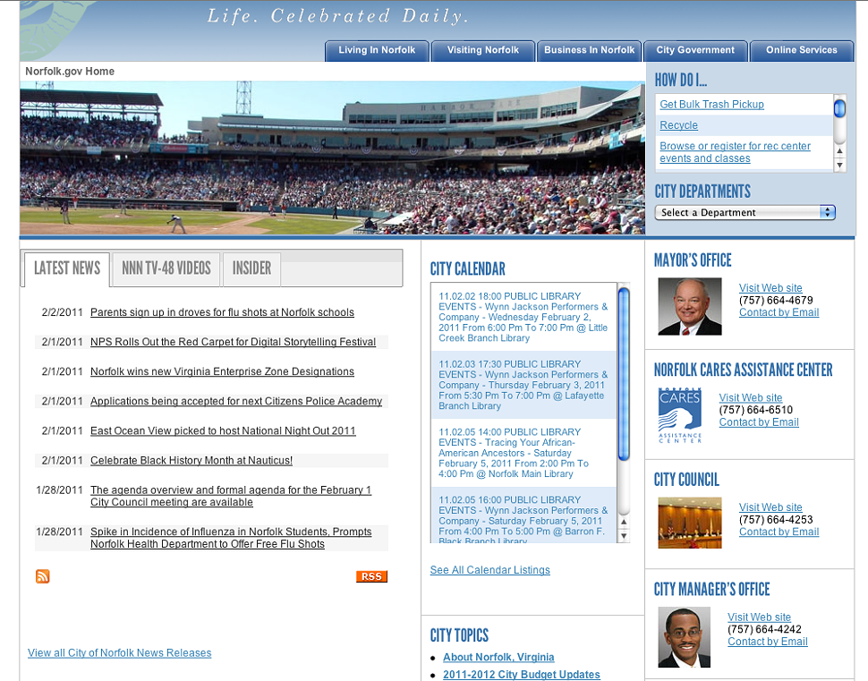 I agree with Chris, et al. Good ideas are meant to be copied. And building websites is as close as grabbing someone’s code or pulling a template from any of a million or more such sites, free and/or paid. I liked the new site. Norfolk should put it back up. And add Twitter and FB accounts for the city council, CAO, etc. 🙂
