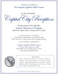 The Virginia Legislative Black Caucus is holding its third annual Capital City Reception next Monday, January 9 at the Science Museum of Virginia. Sponsorships and other details are noted on the attached flier (click to enlarge).