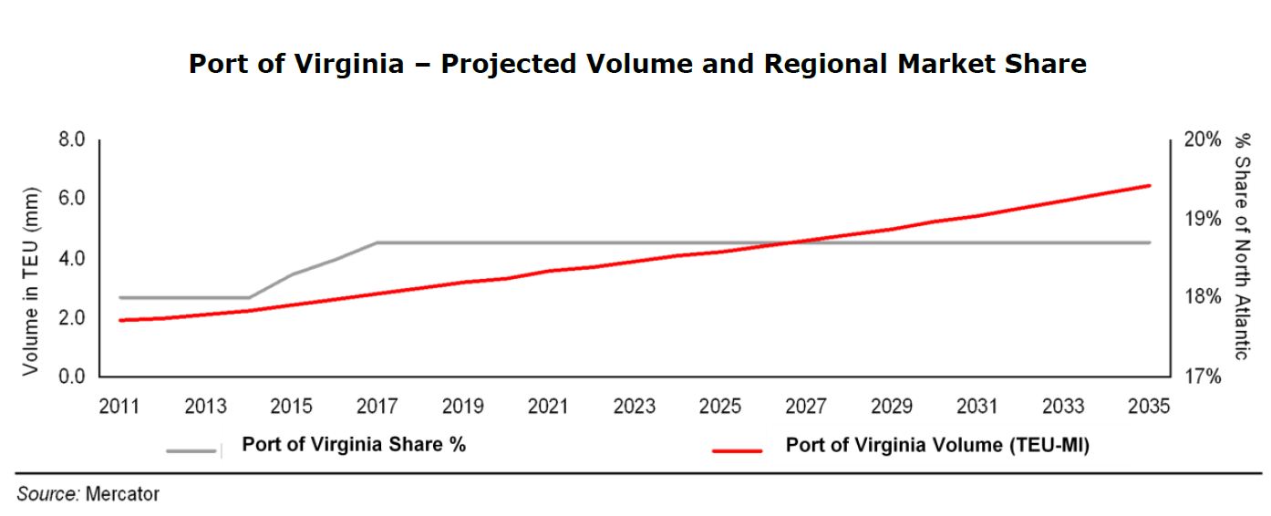 Reading through the proposal, it was the graph above (click to enlarge) which caught my eye. This is, as the report states, a conservative estimate of what is to come for the port. That being the case, it seems to me that the port operations will, without the APM deal, free up money for transportation, although not right away.