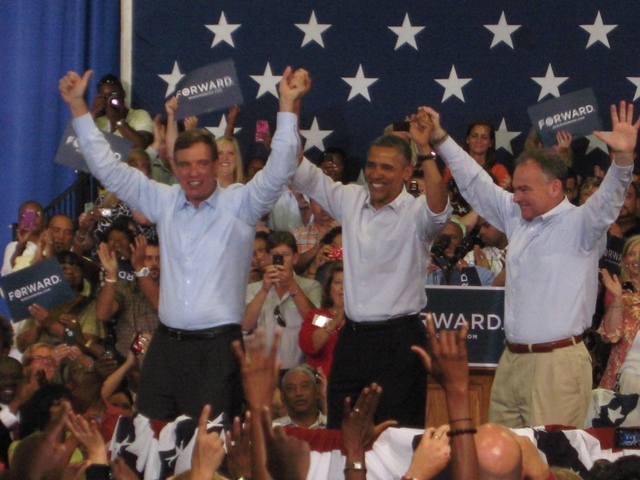 Accompanying the president was Senator Mark Warner, who delighted in introducing Senate candidate Tim Kaine as the next junior Senator from Virginia. I have videos of all three speeches and will post them once I get a chance to.