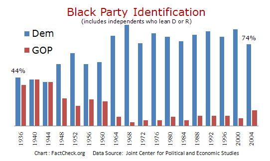 Except for the brief period of Reconstruction, which ended with the Compromise of 1877, the states of the former Confederacy were run by Democrats. Imposition of various methods, from poll taxes to physical intimidation, resulted in very few black voters. Despite the party identification chart above, it is estimated that by the 1940s, only about 5% of blacks were registered to vote.