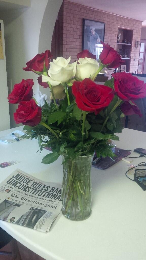 After the exciting week or so you’ve had, what with making a visit to the courthouse to hear opening arguments related to the ban on same sex marriage, and, then trying to keep another special election (House 100th) in everyone’s mind as it sits right smack on our horizon – ah, next Tuesday – I’m betting you were thrilled to sit back, relax and enjoy the Valentine’s Day evening with your wife. The legal news of the day surely made you both smile – and, what can I say about those beautiful flowers, other than – they ARE beautiful and the sentiment even more so. As someone already said, Congrats on both counts. /JM