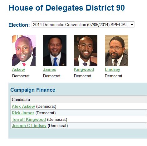 UPDATE: Only three candidates completed the filing. From earlier today: Four candidates have filed paperwork to be on the ballot for Saturday's firehouse primary, according to VPAP. They are: Alex Askew Rick James Terrell Kingwood Joe Lindsey Candidates have until noon today to file their declaration of candidacy and pay a $2,500 nonrefundable filing fee. … Continue reading Updated: 3 in for 90th