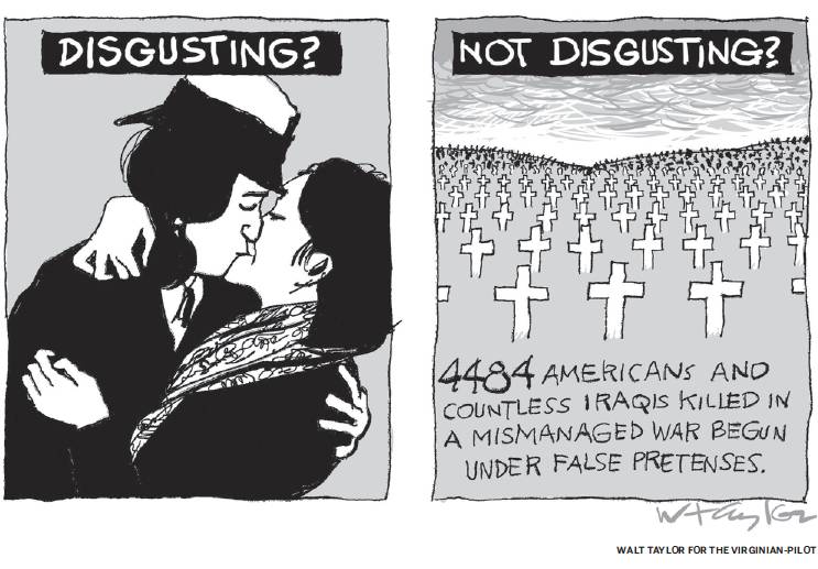 From The Virginian-Pilot: It’s a time-honored tradition at Navy homecomings – one lucky sailor is chosen to be first off the ship for the long-awaited kiss with a loved one. Today, for the first time, the happily reunited couple was gay. Accompanying the article is a couple of photos. Here is one of them: UPDATE: … Continue reading Feel good story of the day: first kiss