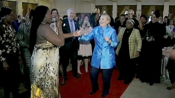 The video below of Secretary of State Hillary Clinton dancing just brings a smile to my face. She looks like she's having a great time.