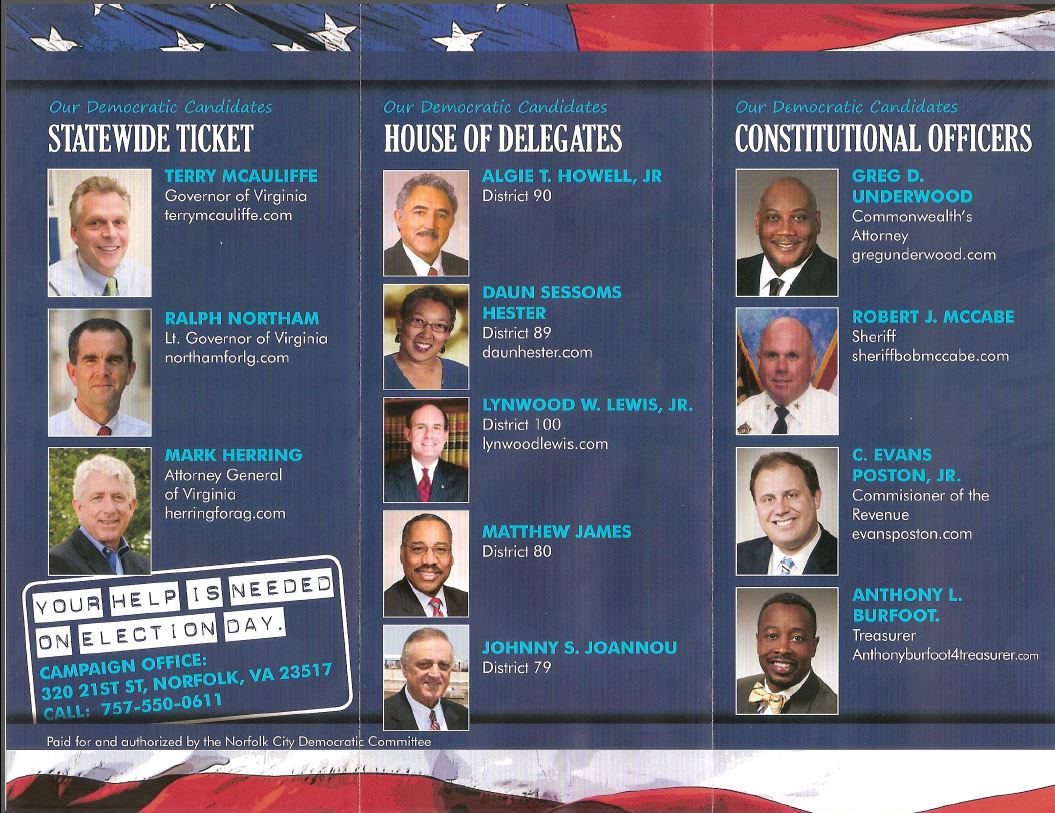 While The Virginian-Pilot was early in endorsing statewide candidates, other newspapers around the state have been rolling theirs out using a more traditional time frame. The Washington Post endorsed Democrat Terry McAuliffe for governor along with Democrats Ralph Northam and Mark Herring for LG and AG, respectively. The Daily Press endorsed McAulliffe and Northam as … Continue reading Statewide endorsements, RTD comes out