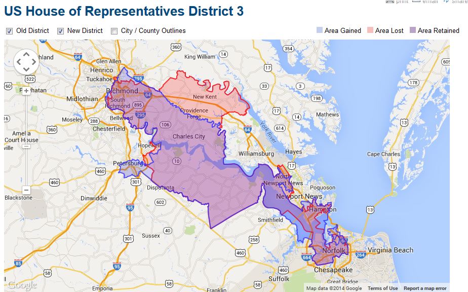 My latest op-ed, title above, appeared in The Virginian-Pilot Thursday. In it, I discuss the effects of the U.S. Supreme court decision in Shelby on the upcoming redrawing of Virginia's 3rd - and surrounding - congressional district. I covered some of this ground in my earlier op-eds, particularly just after Shelby and after a bill … Continue reading ICYMI: Virginia’s redistricting dilemma